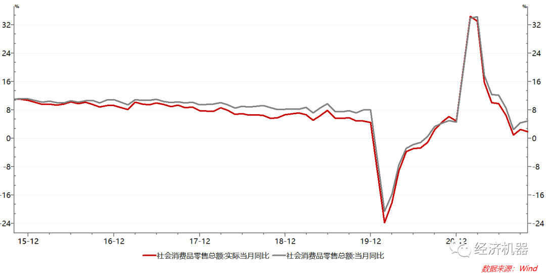 圖3、社會零售銷售:名義和實際值