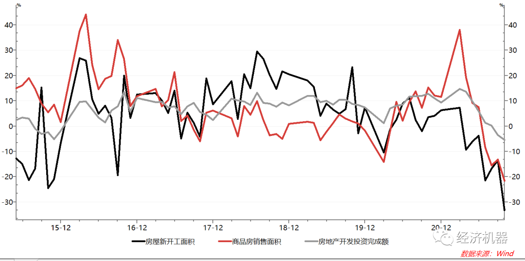 圖7:房地產銷量、新開工量和投資:當月同比