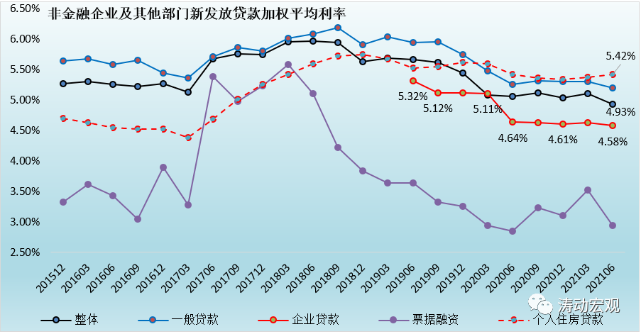 (二)今年二季度,新發(fā)放貸款加權(quán)平均利率降至我們之前預(yù)期的5%以下,即4.93%,較一季度大幅下行17BP。其中,新發(fā)放一般貸款、新發(fā)放企業(yè)貸款以及票據(jù)融資利率分別下行10BP、5BP和58BP。可以看出,除一般貸款和企業(yè)貸款確有明顯下行外,新發(fā)放貸款利率下行與票據(jù)融資利率大幅下行有較大關(guān)系。