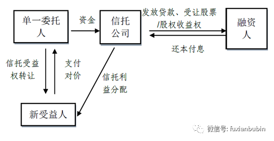 1.單一資金信托是信托公司接受單個委托人委托,依據委托人確定的管理方式單獨管理和運用的貨幣資金的信托。該類業務具體模式列示如下: