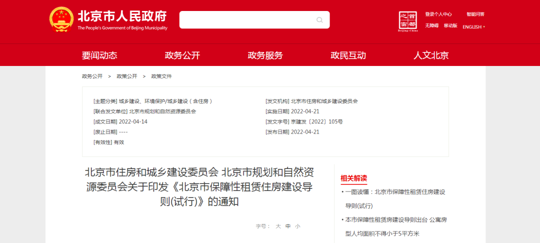 4月21日,北京市住房和城鄉(xiāng)建設委員會、北京市規(guī)劃和自然資源委員會發(fā)布《北京市保障性租賃住房建設導則(試行)》(以下簡稱《導則》)。從整體規(guī)劃、配套設施、單體設計、室內裝修、應用技術等方面,對北京的保障性租賃住房的提出了具體的標準和要求,能夠有效地指導未來北京市保障性租賃住房的建設和發(fā)展。該政策的出臺標志著北京保障性租賃住房的樣貌和功能已基本確定。