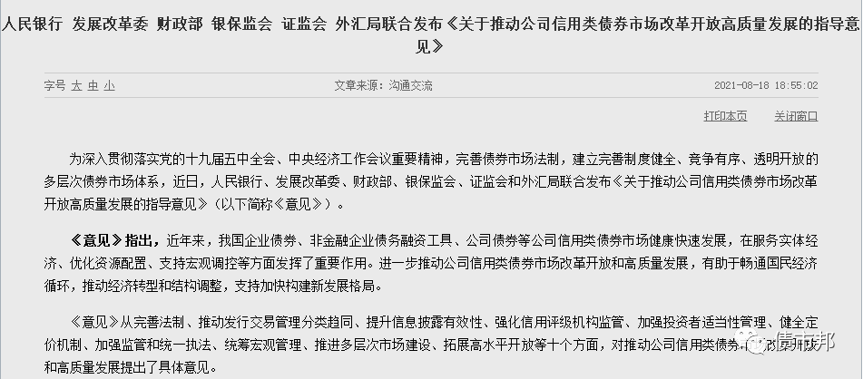 《關(guān)于推動公司信用類債權(quán)市場改革開放高質(zhì)量發(fā)展的指導(dǎo)意見》出臺振奮人心