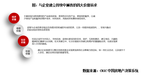 不過需要注意的是,結合顧客訴求角度來看,消費者可謂“無利不起早”。因此企業雖然可以通過付出經濟成本來吸引客戶參與活動,構建社群,但是這種社群粘性較弱。而想要滿足客戶的信息、社交、社會價值,則對企業活動策劃水平提出考驗,既要能夠引起消費者興趣,還需要有一定的精神內核,讓顧客信任并傳播。因此要真正構建以企業為核心的“粉絲社群”對于房企而言,難度仍然較大。
