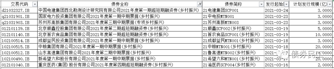 2021年3月19日,銀行間市場交易商協會通過官方微信公眾號發布了《債務融資工具注冊發行業務問答(第8期)》,對鄉村振興票據的實施細則進行了明確,確認募集資金投向分別對應的是農民就業增收項目、農業現代化建設項目和農村鄉村建設三大領域。
