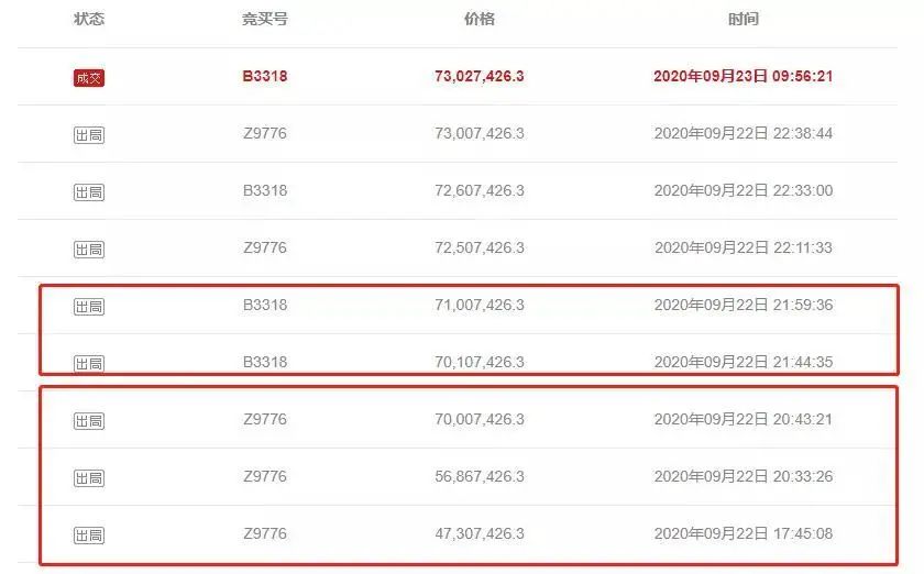 (3)首次出價者不可在自己首次出價領先的狀態下再次出價,需有第二人應價后可再出價,之后可連續出價。當然大多數人都不會這么做,也不排除少數人,比如下面這位。