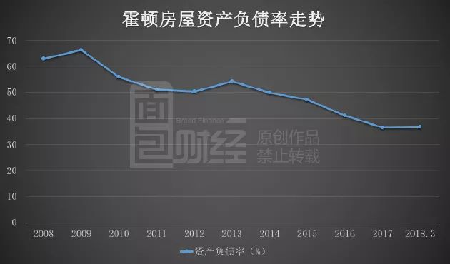 霍頓房屋的資產負債率從2008財年的62.84%降至2017財年的36.41%,截至2018年3月底,資產負債率為36.66%,仍保持低位。