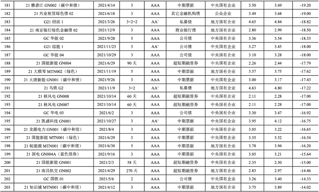 支持多領域綠色債券發行和擴容。2021年1月4日,國家發改委等十部門印發《關于推進污水資源化利用的指導意見》,指出鼓勵企業采用綠色債券、資產證券化等手段,依法合規拓寬融資渠道,推動我國污水資源化利用實現高質量發展。2021年2月22日,國務院印發《關于加快建立健全綠色低碳循環發展經濟體系的指導意見》,指出大力發展綠色金融,發展綠色直接融資,加大對金融機構綠色金融業績評價考核力度。2021年7月27日,發改委等三部委發布《關于鼓勵家電生產企業開展回收目標責任制行動的通知》,指出將完成回收目標并達到國家有關管理要求的責任企業納入家電生產企業“綠色責任名單”,在企業發行綠色債券、綠色信貸審批時優先支持。2021年8月18日,央行等六部委發布《關于推動公司信用類債券市場改革開放高質量發展的指導意見》(以下簡稱《意見》)指出,擴大“雙創”債券、綠色債券發行規模。2021年9月12日,中共中央辦公廳和國務院辦公廳印發《關于深化生態保護補償制度改革的意見》,指出拓展市場化融資渠道,鼓勵符合條件的非金融企業和機構發行綠色債券。2021年9月22日,國務院發布《關于完整準確全面貫徹新發展理念做好碳達峰碳中和工作的意見》,指出支持符合條件的企業上市融資和再融資用于綠色低碳項目建設運營,擴大綠色債券規模。2021年10月18日,國家發改委等四部委聯合發布《關于嚴格能效約束推動重點領域節能降碳的若干意見》,指出拓展綠色債券市場的深度和廣度,支持符合條件的節能低碳發展企業上市融資和再融資。2021年10月24日,國務院印發《2030年前碳達峰行動方案》,指出大力發展綠色債券等金融工具,拓展綠色債券市場的深度和廣度,有助于推動綠色債券市場擴容。2021年11月2日,中共中央、國務院發布《關于深入打好污染防治攻堅戰的意見》,指出大力發展綠色信貸、綠色債券、綠色基金,加快發展氣候投融資,強化對金融機構的綠色金融業績評價。2021年11月10日,國務院辦公廳發布《關于鼓勵和支持社會資本參與生態保護修復的意見》,指出推動綠色基金、綠色債券、綠色信貸、綠色保險等加大對生態保護修復的投資力度;積極支持符合條件的企業發行綠色債券,用于生態保護修復工程。2021年11月27日,國資委印發《關于推進中央企業高質量發展做好碳達峰碳中和工作的指導意見》,指出積極發展綠色金融,有序推進綠色低碳金融產品和服務開發,拓展綠色債券的業務范圍。中央和各部委多次發文有助于拓寬不同領域綠色低碳企業的融資渠道,推動相關領域綠色債券發行。