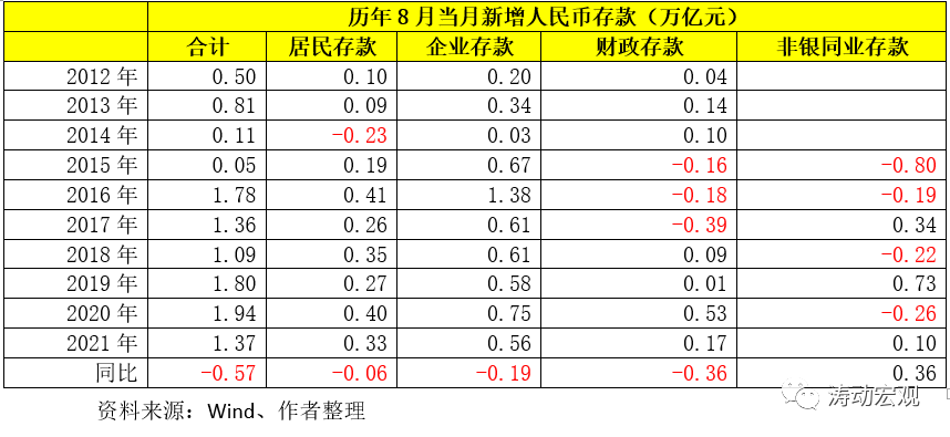 2、受房地產管控力度持續加強影響,以個人按揭貸款為主的居民中長期貸款依然偏弱。今年8月居民中長期貸款新增0.43萬億,創2016年以來歷年8月新低,同比少增0.13萬億。我們看到,今年7月和8月的當月新居民中長期貸款均創2016年以來新低,表明房地產政策在7-8月的影響有強化態勢。