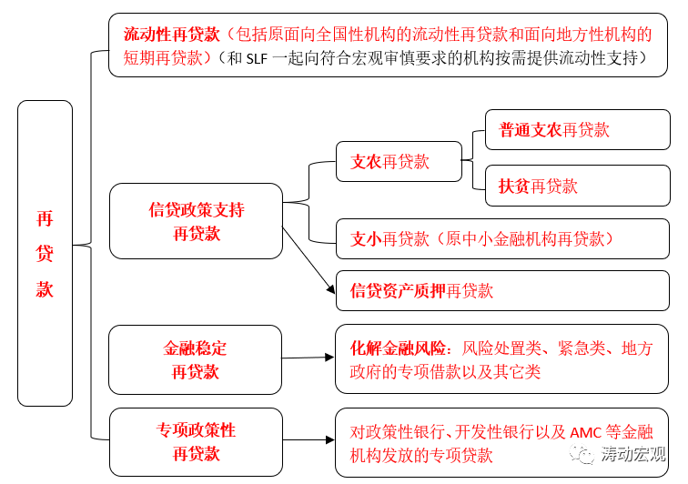 (2)細(xì)分后的流動(dòng)性再貸款包括之前人總行向全國性存款類金融機(jī)構(gòu)發(fā)放的流動(dòng)性再貸款和人行分支機(jī)構(gòu)向地方性存款類法人機(jī)構(gòu)提供的短期再貸款。