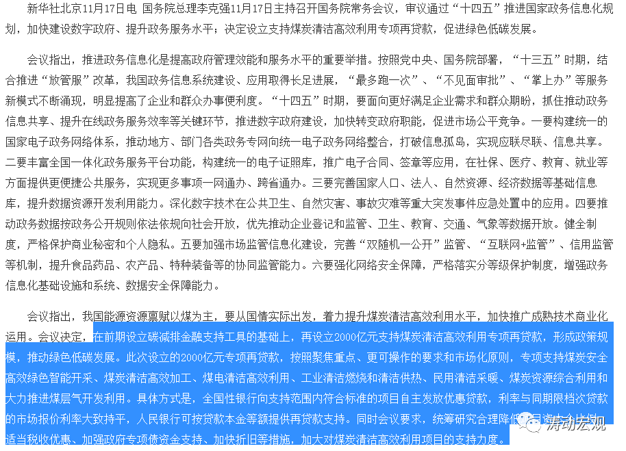 (一)除碳減排支持工具和2000億元專項(xiàng)再貸款外,11月17日的國務(wù)院常務(wù)會(huì)議還提出要“統(tǒng)籌研究合理降低項(xiàng)目資本金比例、適當(dāng)稅收優(yōu)惠、加強(qiáng)政府專項(xiàng)債資金支持、加快折舊等措施,加大對(duì)煤炭清潔高效利用項(xiàng)目的支持力度”。