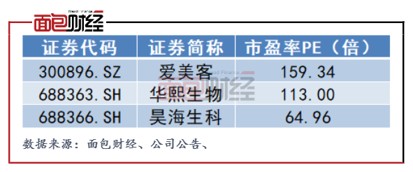 作為A股醫美三劍客,昊海生科和華熙生物PE僅在113倍以及64倍左右,愛美客的PE遠大于同行其他公司。