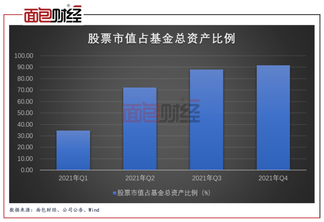 圖2:2021年Q1至2021年Q4股票市值占基金總資產比例