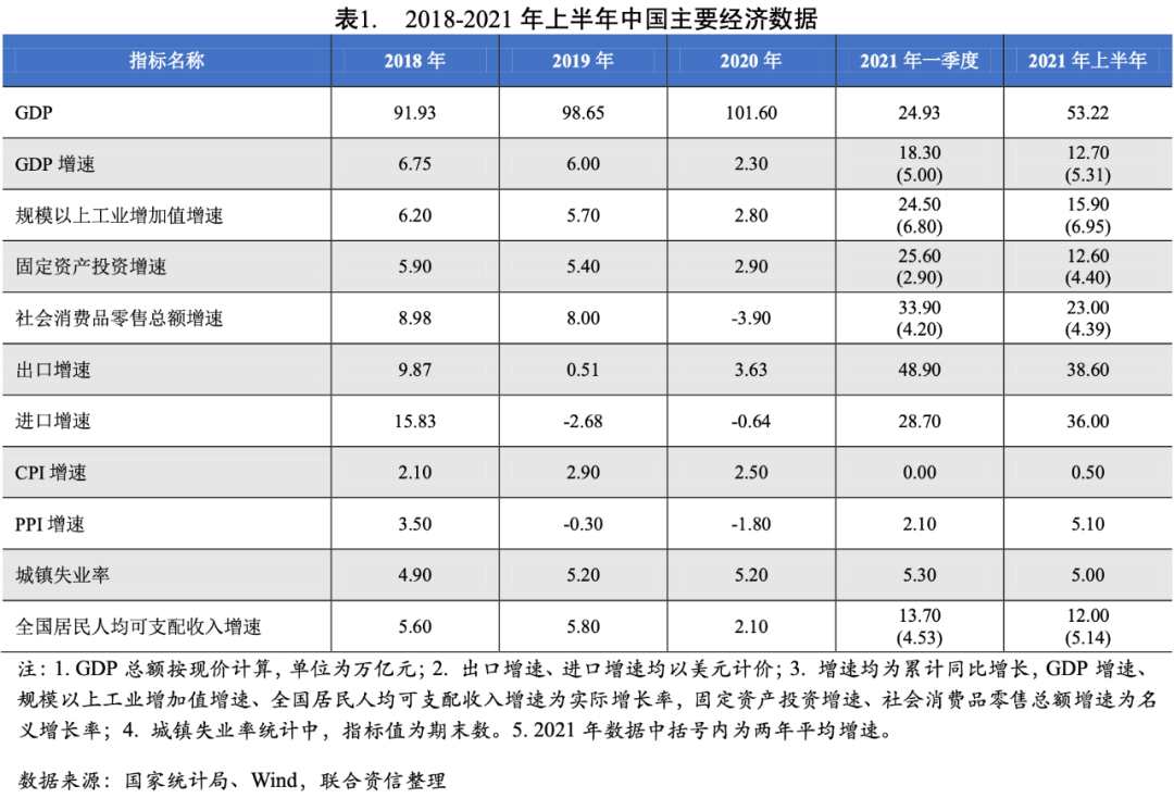 2021年上半年,我國(guó)經(jīng)濟(jì)穩(wěn)定修復(fù),結(jié)構(gòu)有所改善但仍未實(shí)現(xiàn)根本性的好轉(zhuǎn),消費(fèi)拉動(dòng)弱于疫情前水平是GDP增速的主要制約。上半年工業(yè)生產(chǎn)較快增長(zhǎng),由于碳達(dá)峰工作的推進(jìn)以及環(huán)保限產(chǎn)措施的實(shí)施,鋼鐵、有色和水泥等部分行業(yè)產(chǎn)能擴(kuò)張空間有限。服務(wù)業(yè)與疫情前水平仍有一定差距,主要受局部性疫情影響,住宿和餐飲、租賃和商務(wù)服務(wù)業(yè)拖累明顯。