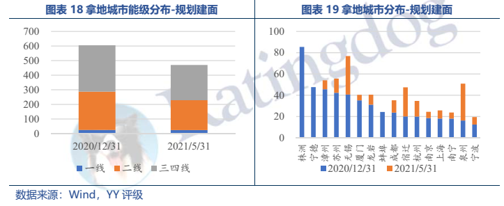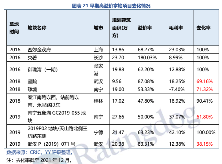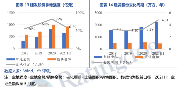 此外,在亮眼的銷售業績下,資產瑕疵開始顯現。由于2016-2017年的激進擴張,公司高溢價土地疊加限價政策出現虧損,2021年4月,公司公告稱,因受多城市限價政策影響,公司為5個地產項目計提存貨跌價準備19.81億元。而且這樣高溢價拿地的“大手筆”近年來并未見放慢腳步。