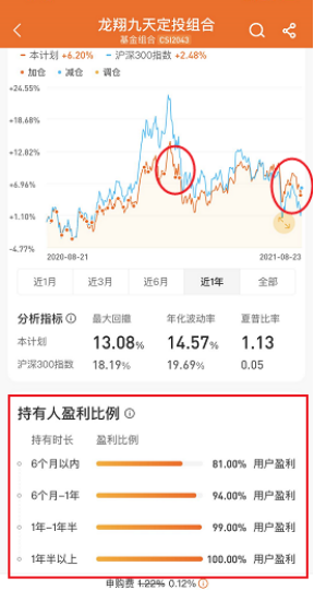 我把我們之前蛋卷基金(現改名:龍翔九天)近一年運行的情況給大家截圖瞅瞅——