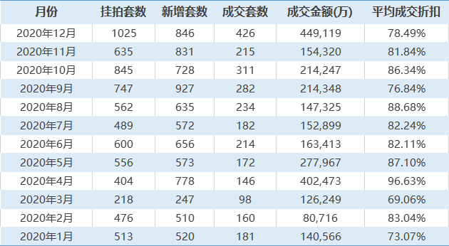 圖|2020年1-12月北京法拍房成交數據