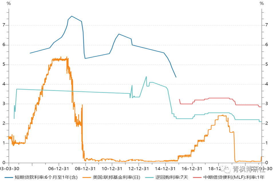 1、美聯儲政策收緊過程中,中國貨幣政策在政策利率調整方面,要么選擇觀望,要么跟隨加息,二者在節奏上雖有差異,但方向上總體保持一致。例如,美聯儲在2015年12月至2018年12月的三年加息周期里,恰恰也是中國貨幣政策持續收緊與監管政策不斷強化的時期。