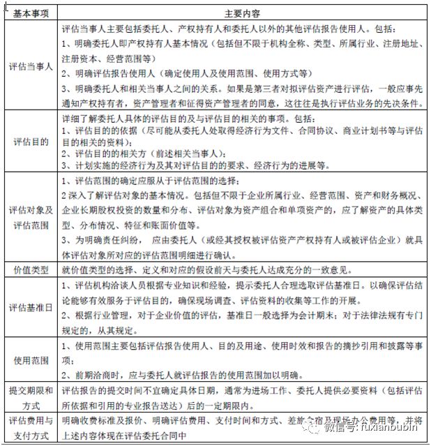 (二)資產評估委托合同的主要內容