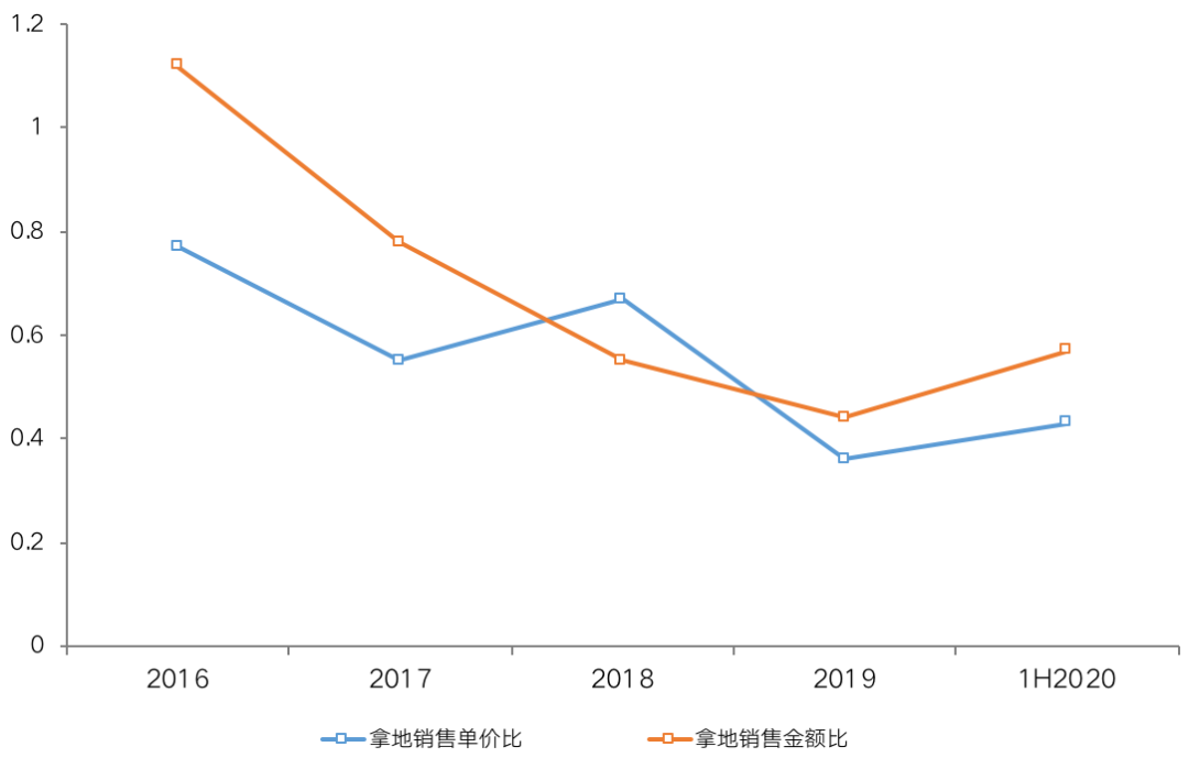 圖:招商蛇口2016-1H2020拿地銷售比