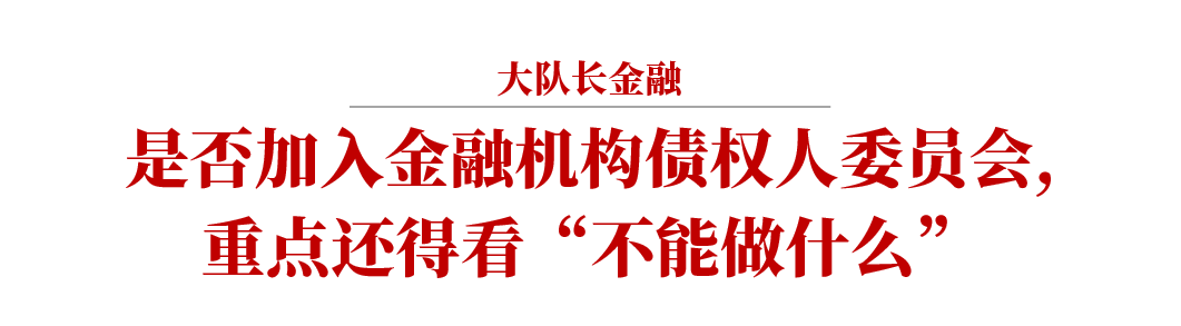 那么, 如果今天你的債權金額不大, 基本不可能成為金融機構債權人委員會的核心成員, 那么還要參加嗎? 對此, 我們在上文已經分析了, 對于非核心成員的成員機構, 其最主要的權利就是對于重組方案進行表決, 因此是否還要參加金融機構債權人委員會的判斷實質就是要看加入債委會后, 是否還會對債權人的部分權利進行限制。