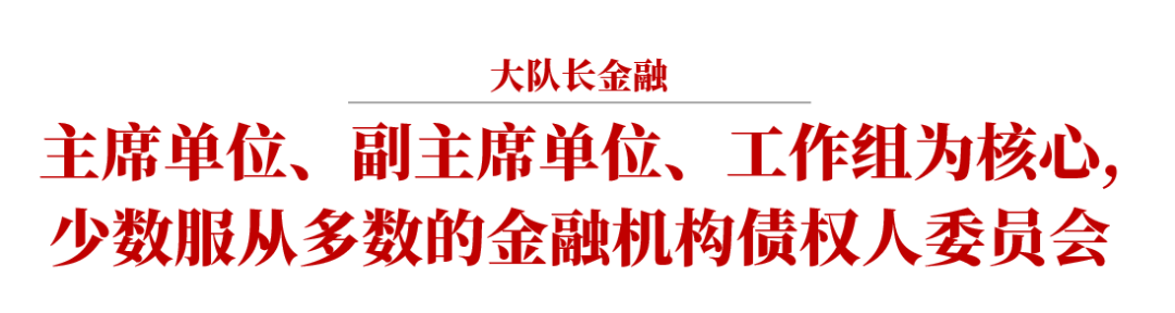 進一步地, 在確定主席單位和副主席單位后, 根據《金融機構債權人委員會工作規程》第七條的規定, 債委會主席單位牽頭組織成立債委會工作組, 副主席單位和成員機構應當積極配合主席單位工作, 即債委會工作組的成員實際上是由主席單位來確定的。