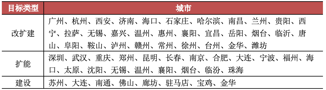 表:52個城市“十四五”航空運輸發展目標