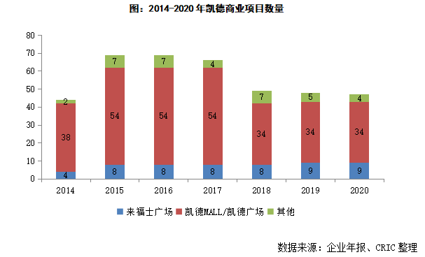 與華潤繼續在購物中心方面大舉擴張不同,凱德在中國的商業項目規模從2016年開始就持續收縮,2018年向萬科旗下印力集團出售了20家購物中心之后更是直接將企業在中國在營的商業項目數量直接減少了三分之一。而由于凱德持續推進輕資產戰略,因此企業在2021年還向平安出售了6個來福士廣場的股權。整體看來,凱德在中國商業地產領域的收縮仍在持續,未來的投資重點將會主要放在新經濟領域。