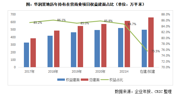 • 華潤重持有,已開業商場權益占比達85%左右