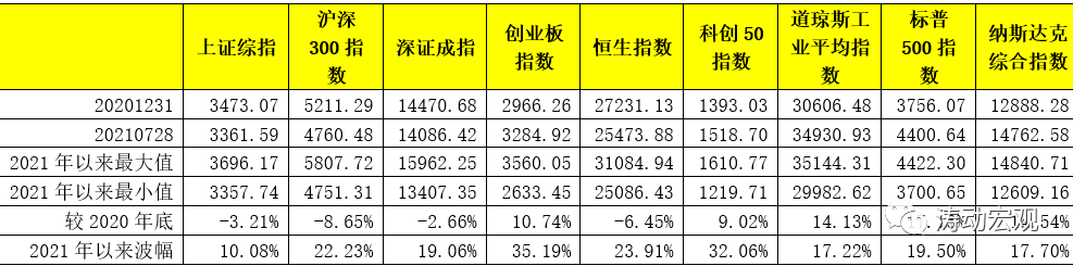 截至2021年7月28日,今年以來,A股市場波動幅度明顯加大,其中上證綜指波動幅度為10.08%、滬深300指數波動幅度為22.23%、深證成指波動幅度為19.06%、創業板指數和科創50指數波動幅度分別高達35.19%和32.06%。