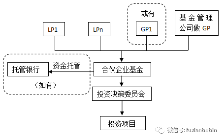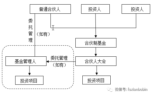 有限合伙型股權投資基金是投資者依據《合伙企業法》成立有限合伙企業,采用有限合伙企業形式的股權投資基金,不具有獨立的法人實體地位,其基本組織架構如下圖所示: