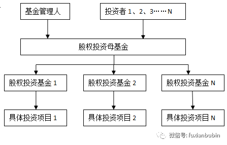 股權投資母基金是以股權投資基金為主要投資對象的基金,即基金中的基金。股權投資母基金通過集合多個投資者資金,形成集合投資計劃,再投資于多個股權投資基金,具體結構如下圖所示: