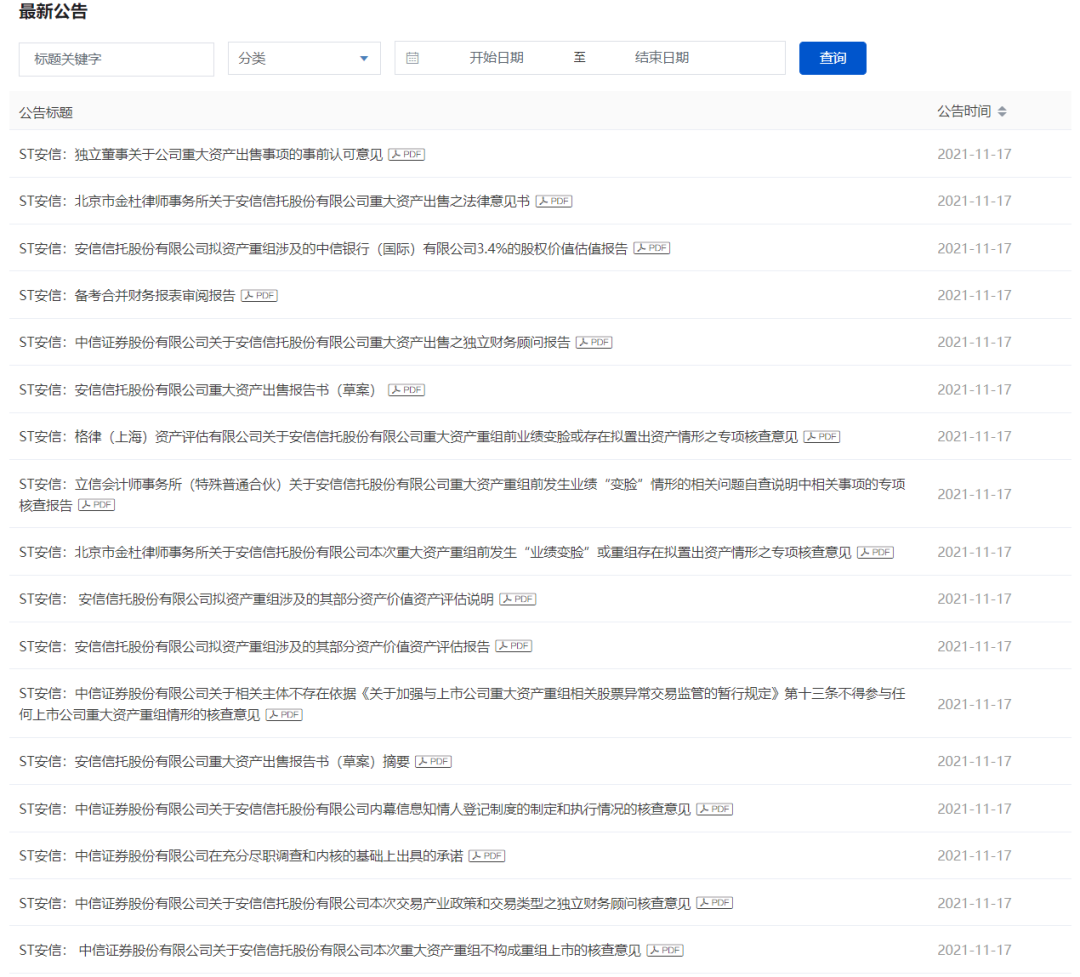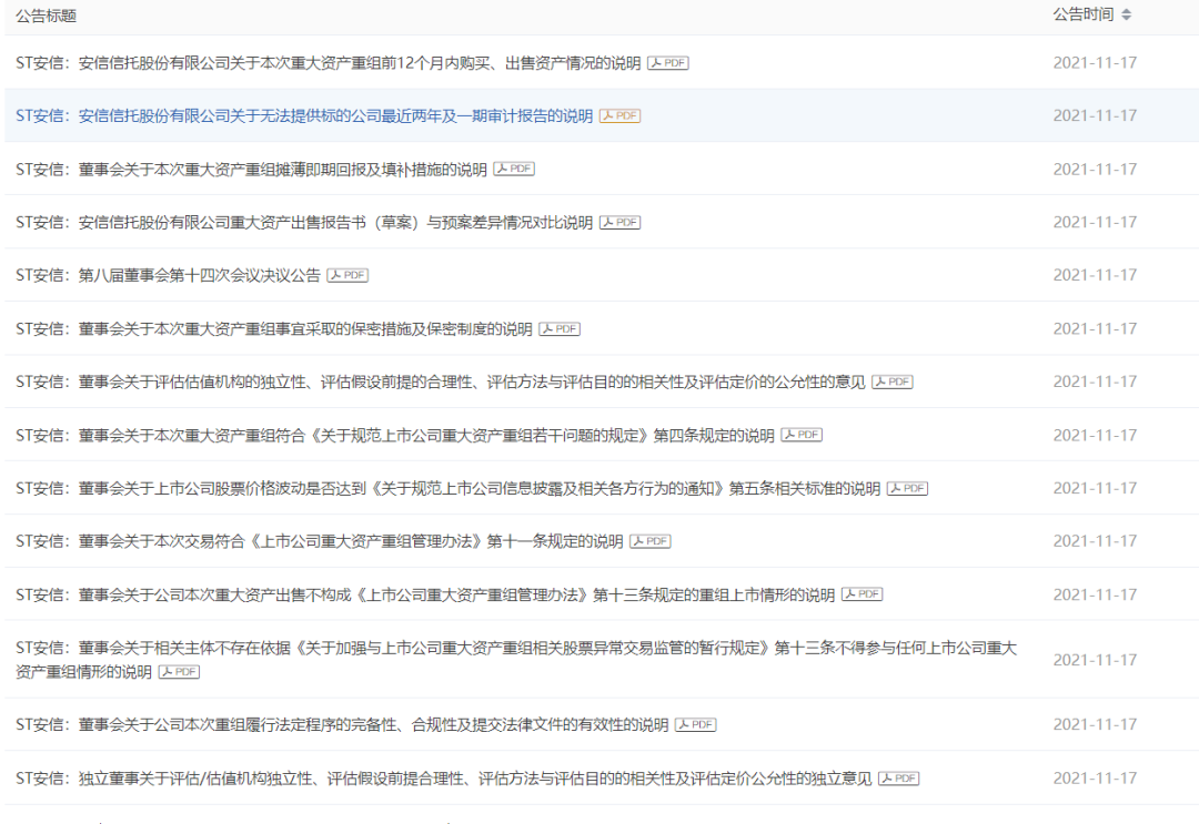 11月17日,安信信托再一次密集發(fā)布了45份公告,一系列公告推動了股價漲停;也讓人對這45份公告表示好奇,究竟說了什么?
