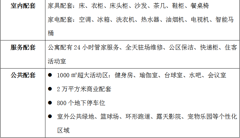 配套服務(wù):項目除了配置人臉識別系統(tǒng)、管家式服務(wù)、駐場維修外,又新增加了“健康管家”服務(wù),提供健康專業(yè)指導(dǎo)及健身私教。