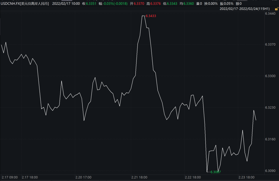 俄烏局勢雖然不斷升級,但未來走向仍具有諸多不確定性,有賴于各方之間的博弈,在此背景下,建議多關(guān)注美元、國債、黃金等避險資產(chǎn),同時做多波動性。當然需要指出的是,在國外形勢日趨復雜的背景下,相對平靜的中國也在一定程度上支撐著人民幣資產(chǎn)成為避險資產(chǎn)之一。所以我們看到,近期人民幣不斷走強,離岸人民幣匯率甚至一度逼近6.30的高位,預計也應是地緣博弈的結(jié)果。