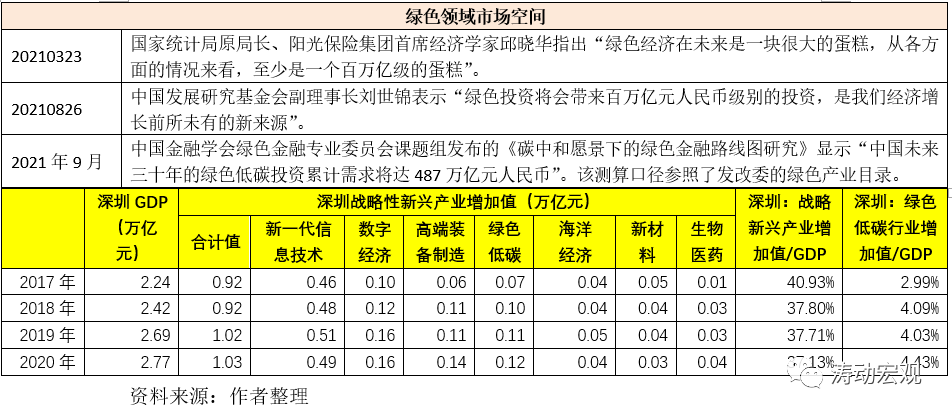 以公布相關(guān)數(shù)據(jù)的深圳為例,其戰(zhàn)略新興產(chǎn)業(yè)增加值占其GDP的比例高達(dá)37%以上(其中,綠色低碳增加值占其GDP的比例達(dá)到4.43%)。