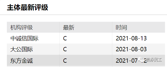 藍光發展的實際控制人是楊鏗,是四川省最大的房地產開發公司,位列2020年中國房地產企業銷售排行榜操盤金額第39位。藍光發展的評級機構包括中誠信國際、大公國際和東方金誠,主體信用評級最高達到AAA,目前藍光發展在三家評級機構的最新評級均為C。藍光發展的信用評級經歷了大起大落,評級變動主要是集中在2021年6月份以來。