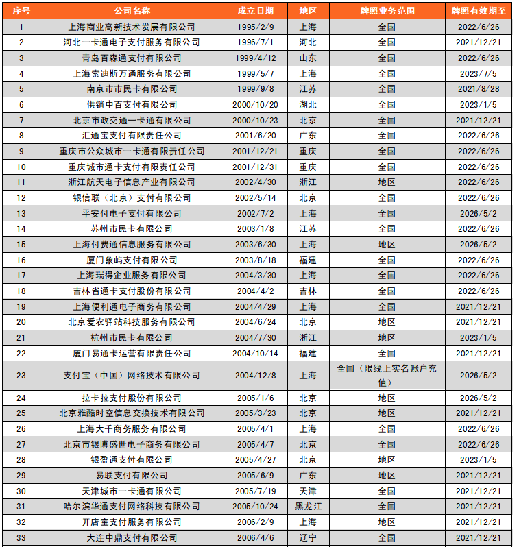 獲預付卡發行與受理類牌照的機構有140家,其中北京27家,上海29家,江蘇12家;業務范圍為全國的有112家公司,其中7家公司預付卡發行與受理業務僅能為線上實名賬戶充值;業務范圍為地區的有28家,其中通聯支付網絡服務股份有限公司預付卡發行業務開展地區為上海市、北京市、江蘇省、廣東省、山西省,預付卡受理業務范圍為全國。