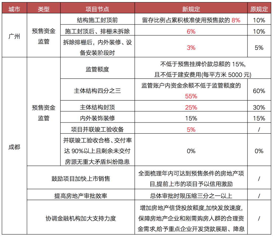 表:成都、廣州預(yù)售資金監(jiān)管調(diào)整情況