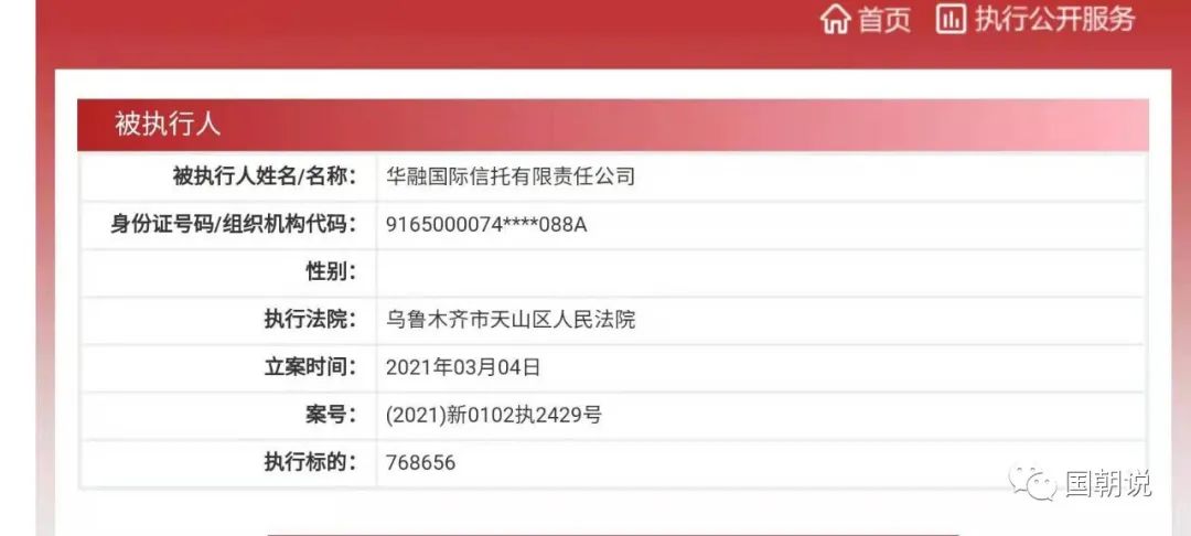 2021年3月4日,華融信托有限被法院列為被執(zhí)行人,執(zhí)行標(biāo)的為768656元,執(zhí)行金額雖然不高,不過這個案件卻反映出華融信托內(nèi)部管理混亂,存在著巨大管理漏洞。