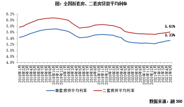 與此同時(shí),全國(guó)房貸平均利率迎來(lái)“四連漲”。數(shù)據(jù)顯示,全國(guó)房貸平均利率于2021年2月止跌回升,連續(xù)四個(gè)月處在穩(wěn)步上升通道,5月,全國(guó)首套房貸款平均利率5.33%,環(huán)比再上漲2BP,二套房貸款平均利率5.61%,環(huán)比上漲2BP。