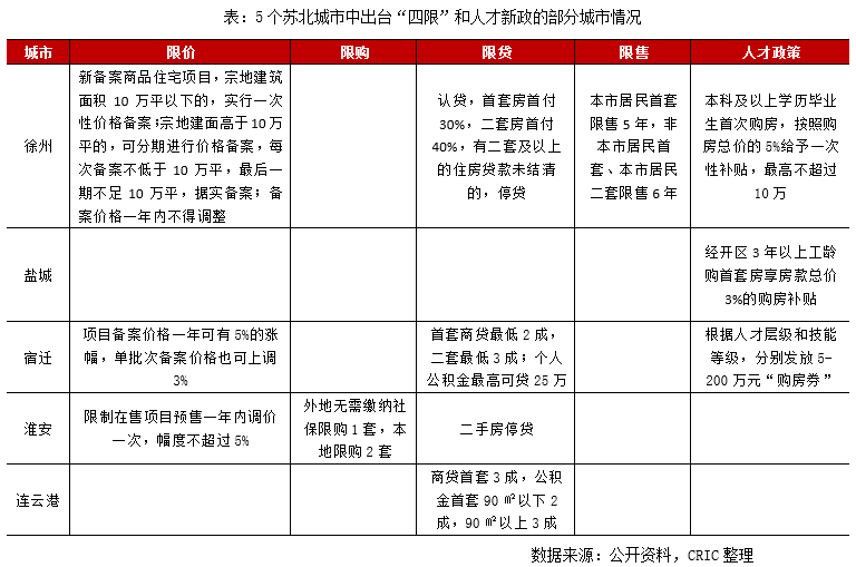 此外,蘇北五城在樓市調(diào)控政策層面上也相對寬松,給予了外來資金“炒房”的空間。尤其在核心城市調(diào)控趨嚴(yán)的背景下,房價不破萬的蘇北城市尚屬“價格洼地”,不乏部分投機(jī)者借學(xué)區(qū)炒作、返鄉(xiāng)置業(yè)之名入市,實則對于本地成交量價齊增也起到了推波助瀾的作用。