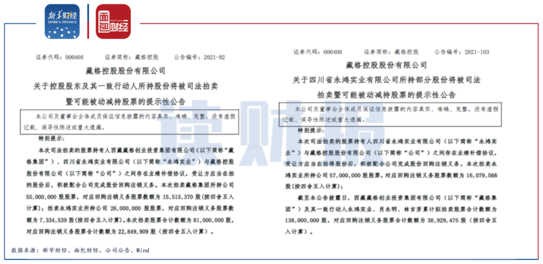 2021年9月23日,藏格控股發布公告稱,公司于近日收到控股股東藏格集團及其一致行動人永鴻實業的《告知函》,將于2021年10月21日10時至2021年10月22日10時在淘寶網司法拍賣網絡平臺上公開拍賣藏格集團持有的5500萬股及永鴻實業持的2600萬股公司首發后限售股。