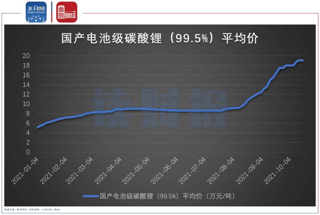 安泰科數據顯示,國產電池級碳酸鋰的平均價由年初的5.15萬元/噸增長至9月末的18萬元/噸,增幅接近2.5倍。2021前三季度藏格控股生產碳酸鋰5571.85噸,銷售則達到8390.21噸。