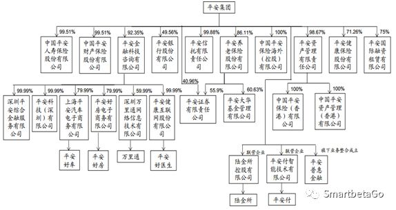 以平安系為例,其下轄金融業(yè)務(wù)板塊圖如下。