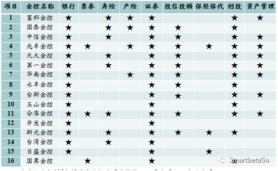 備注:數(shù)據(jù)截止公元2016年末,僅含金控直接持有的子公司