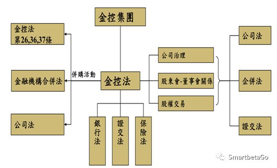 臺(tái)灣“金控”適用的法律法規(guī)如下圖所示。