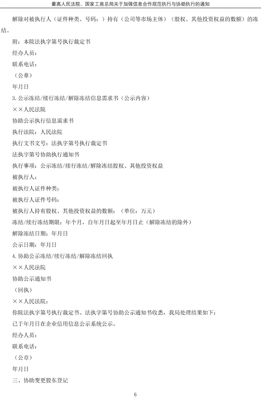 為了避免上述情況、拖延甚至阻礙法院強制執行的進程,《會議紀要》規定了人民法院送達協助文書后,市場監督管理機關不得受理被執行人或被執行人所投資的目標公司辦理出資比例變更、增資、擴股等業務申請以及公司登記機關變更的業務,協同人民法院共同扼殺被執行人逃避執行的可能性。