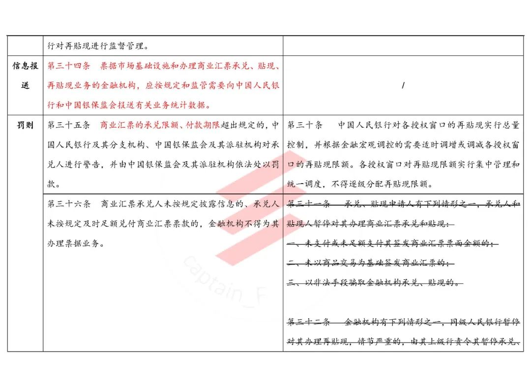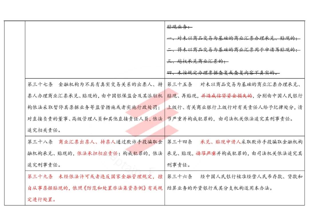 另外,細心的同學還發現,第三十七條中,對于金融機構為不具有真實交易關系的商票辦理貼現,不再要求造成信貸資金損失,將直接面臨處罰。這意味著,融資票不復存在,金融機構也不要幻想為了變相給核心企業放款,創造條件達到放款目的了。
