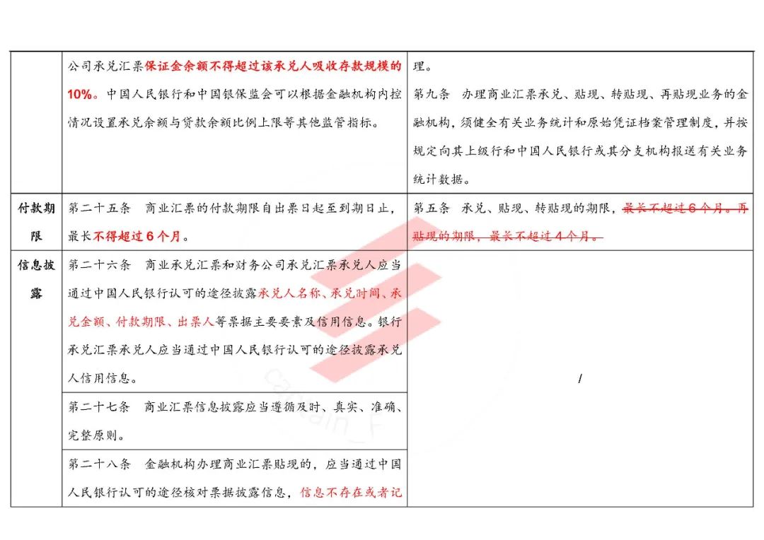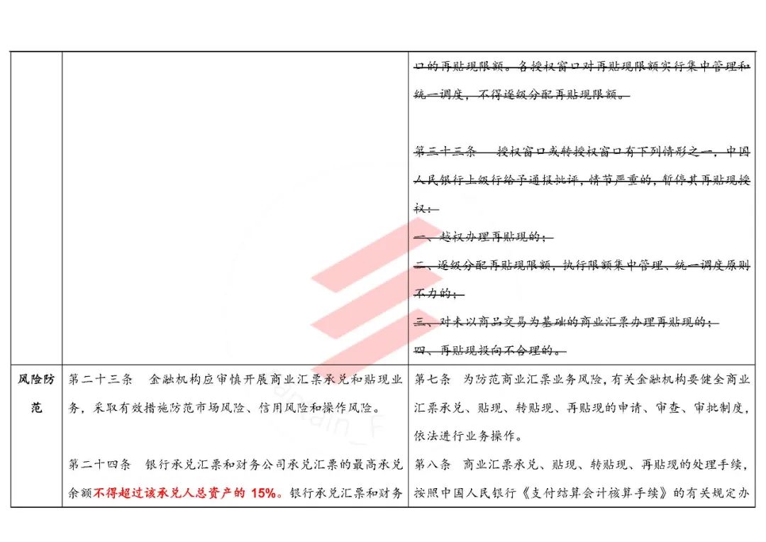“第二十四條 銀行承兌匯票和財務公司承兌匯票的最高承兌余額不得超過該承兌人總資產的15%。銀行承兌匯票和財務公司承兌匯票保證金余額不得超過該承兌人吸收存款規模的10%。中國人民銀行和中國銀保監會可以根據金融機構內控情況設置承兌余額與貸款余額比例上限等其他監管指標。”