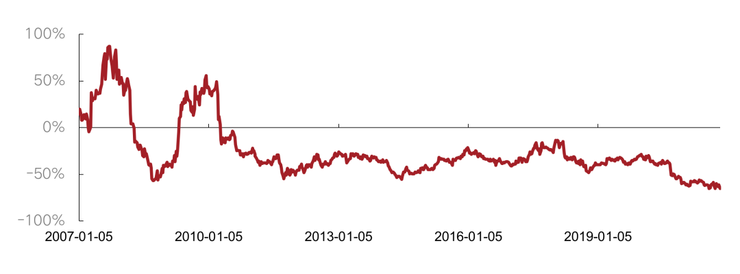 注:恒生中國內地地產指數的推出主要是為了反映前10只市值最大、流通性最高,在香港上市但主要營業收入來自中國內地的房地產股票表現。當前成分股共10只,分別為:中國金茂、中國海外發展、世茂集團、龍湖集團、華潤置地、龍光集團、碧桂園、中國恒大、碧桂園服務、融創中國